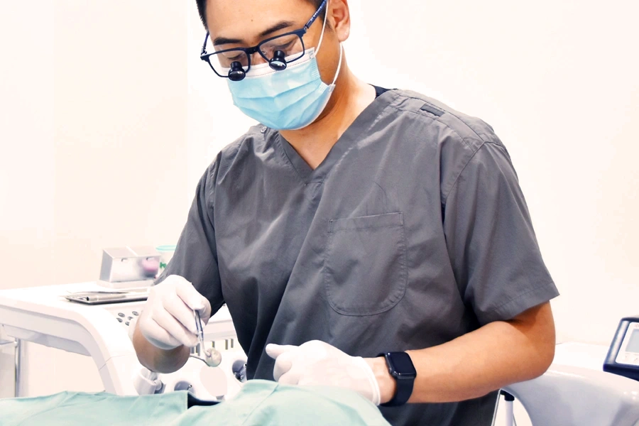 「怖い」「痛い」という不安を解消するため、治療の痛みを最小限に抑える工夫を徹底しています。麻酔方法から器具の使い方まで細心の注意を払い、治療中も患者様のペースを最優先。お声がけを欠かさず、精神的な不安にも寄り添って治療を進めます。