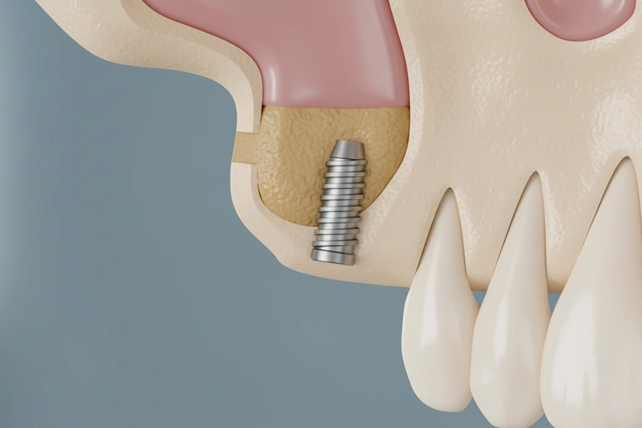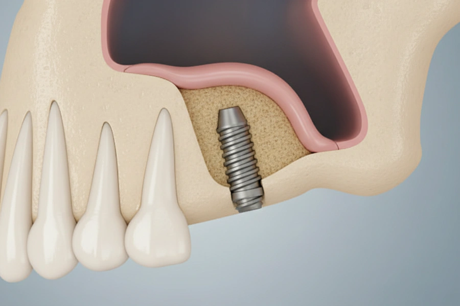 上あごの奥歯の上には「上顎洞」と呼ばれる空洞があります。奥歯を失うと、この空洞が広がり、インプラントを埋め込むための骨の厚みが不足することがあります。サイナスリフトは、この上顎洞に骨を移植したり、骨を増やす材料を注入したりして、インプラントに必要な骨の厚みを作る処置です。