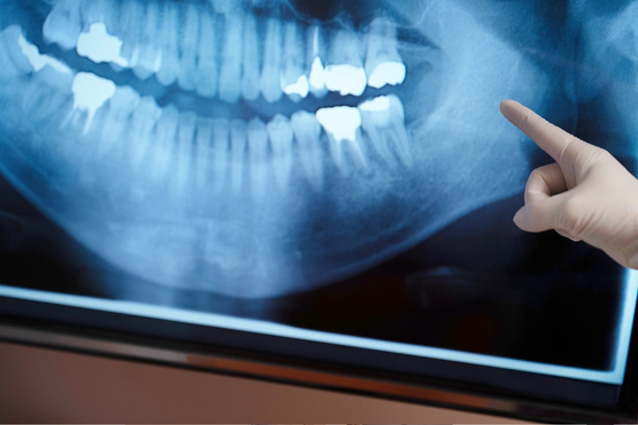 インプラントを埋め込む前に、お口全体の状態を確認します。虫歯や歯周病がある場合は、まずその治療を優先します。これらの病気が残ったままインプラント治療を進めると、インプラントが抜け落ちてしまうリスクがあるためです。インプラントを長く使うためには、事前の口腔ケアが非常に重要となります。