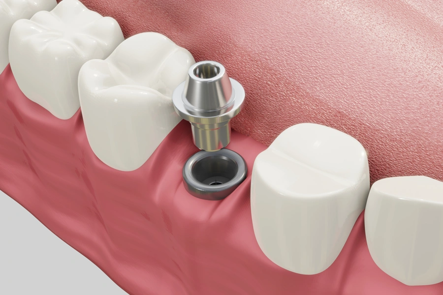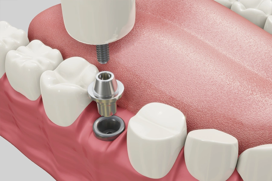インプラントと骨が安定したら、インプラントと人工歯をつなぐ土台(アバットメント)を装着します。当院では、感染リスクや調整のしやすさを考慮し、インプラントと土台が別々になっているタイプを使用します。これにより、より安全で精密な治療を行うことができます。