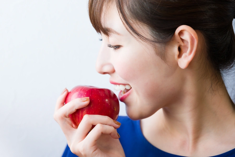 インプラントの最大の特長は、ご自身の歯とほぼ変わらない噛み心地です。人工歯の根をあごの骨にしっかりと固定するので、硬いものでもグラつくことなく、力強く噛むことができます。食事のストレスがなくなり、食べ物の味をより楽しめます。