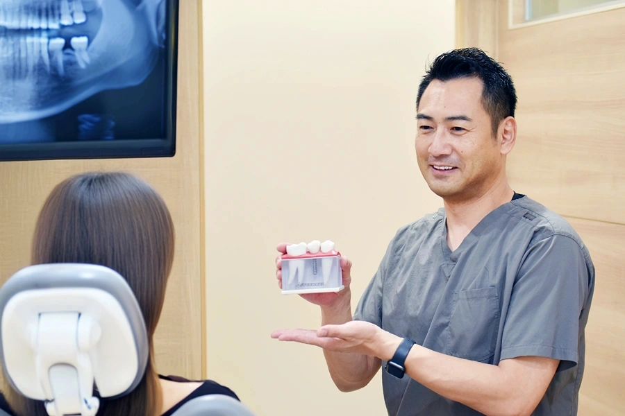 高額になりがちなインプラント治療ですが、当院では患者様が安心して治療に臨めるよう、1本あたりの治療費を総額でご提示しています。増骨処置など特別な処置が必要ない限り、お見積もり時に提示した費用から高額になることはありません。これにより、「後から追加費用が発生するのでは」といったご心配を解消し、治療に専念していただける環境を整えています。インプラント治療の費用について気になることがあれば、お気軽にご相談ください。